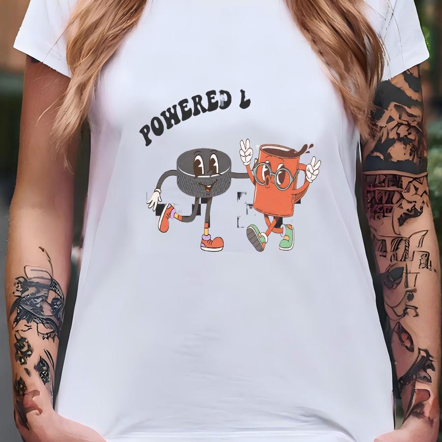Powered By Pucks And Coffee Hockey Sweatshirt, Funny Hockey Mom Sweater, Retro Hockey Shirt, Hockey Mom Gift, Vintage Hockey Shirt T-shirt