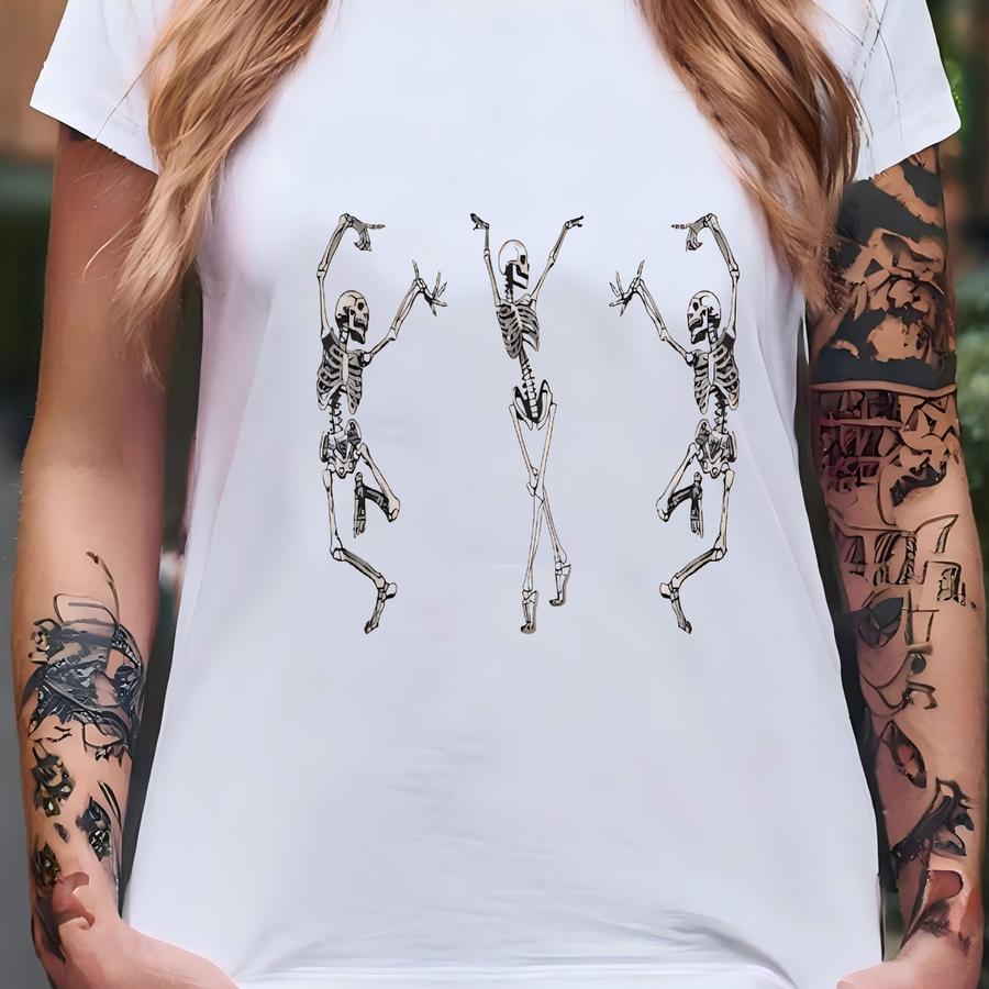 Cute Dancing Skeleton Halloween Sweatshirt, Girly Fall Sweater, Happy Halloween Tshirt, Fall Skeleton Sweatshirt, Spooky Cute Skeletons, T-shirt