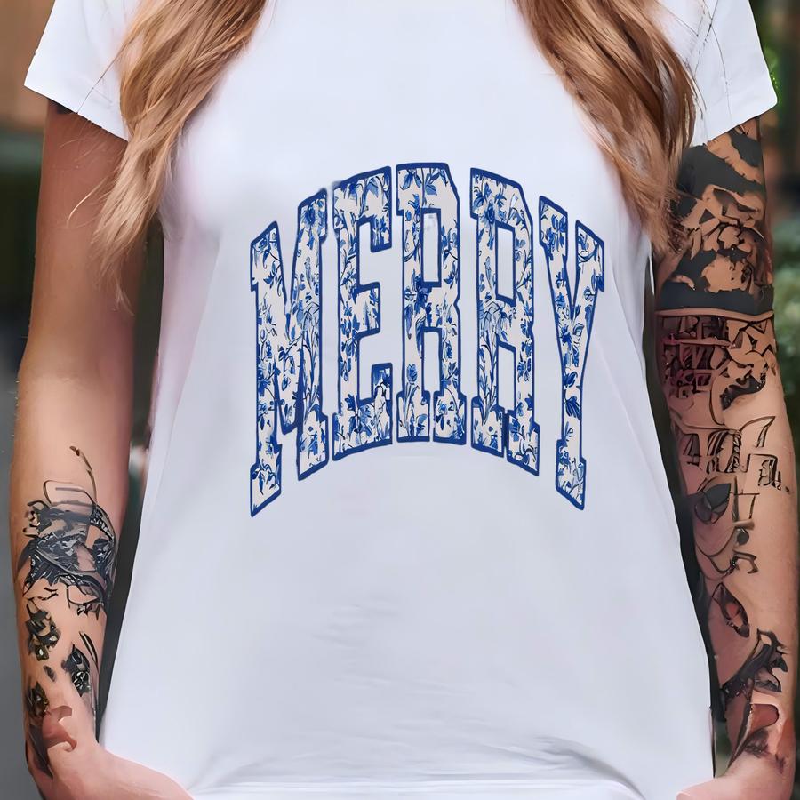 Chinoiserie Merry Sweatshirt, Merry Christmas Sweater, Blue Christmas, Christmas Cute Shirt, Grand Millennial Christmas, Toile Christmas, T-shirt