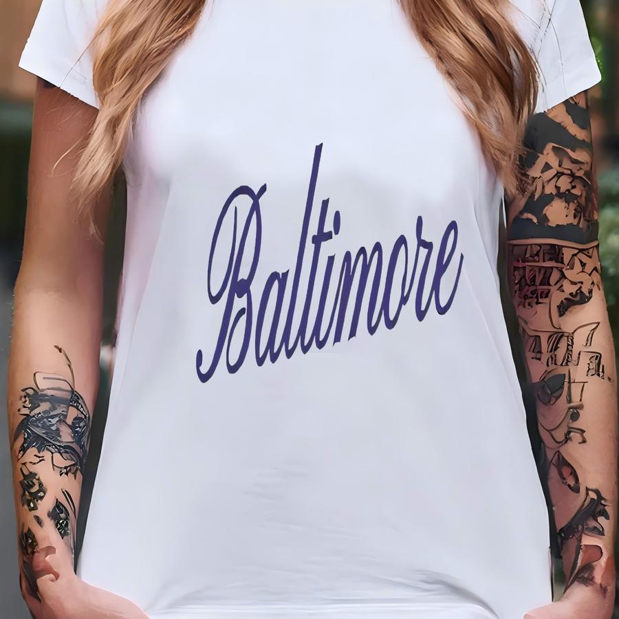 Baltimore Script Baby Tee, Football Cropped Hoodie For Women, Tailgating Tee, Gift For Baltimore Fan, Purple Vintage Tee, Sporty Top, City T-shirt