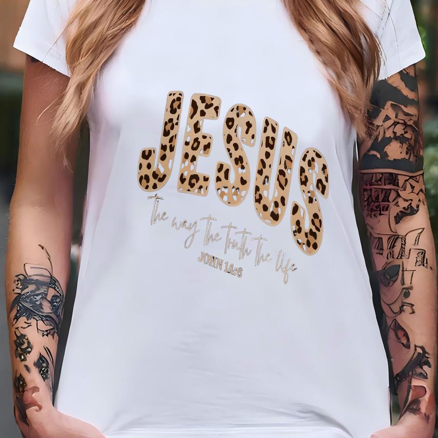 Christian Jesus Sweatshirt, Leopard Print Bible Verse Tshirt, Faith Apparel Gift, Jesus Loves You, The Way The Truth The Life Hoodie T-shirt