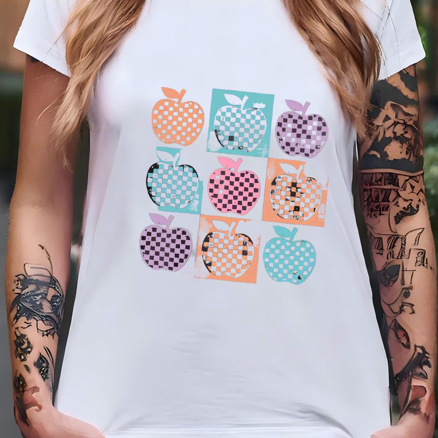 Retro Apple Teacher Shirt: Checkered Tee T-shirt