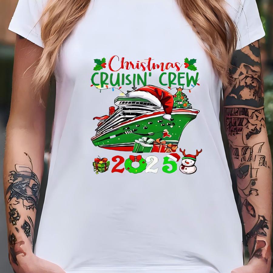 Christmas Cruisin Crew 2025 Shirt, Festive Holiday Cruise Tee, Merry Ocean Getaway Shirt, Tropical Christmas Vacation Tee, Family Cruise Tee T-shirt