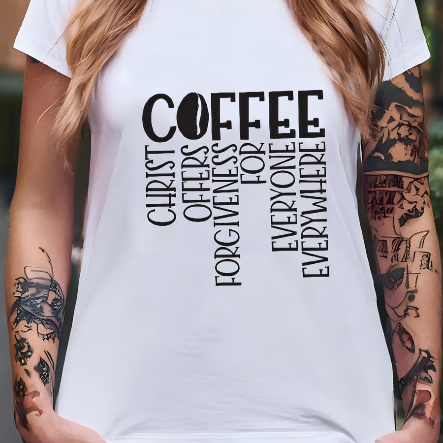 Christ Offers Forgiveness For Everyone Everywhere Shirt, Funny Coffee Acronym Tee, Faith And Humor Christian Shirt, Spiritual Message T-shirt