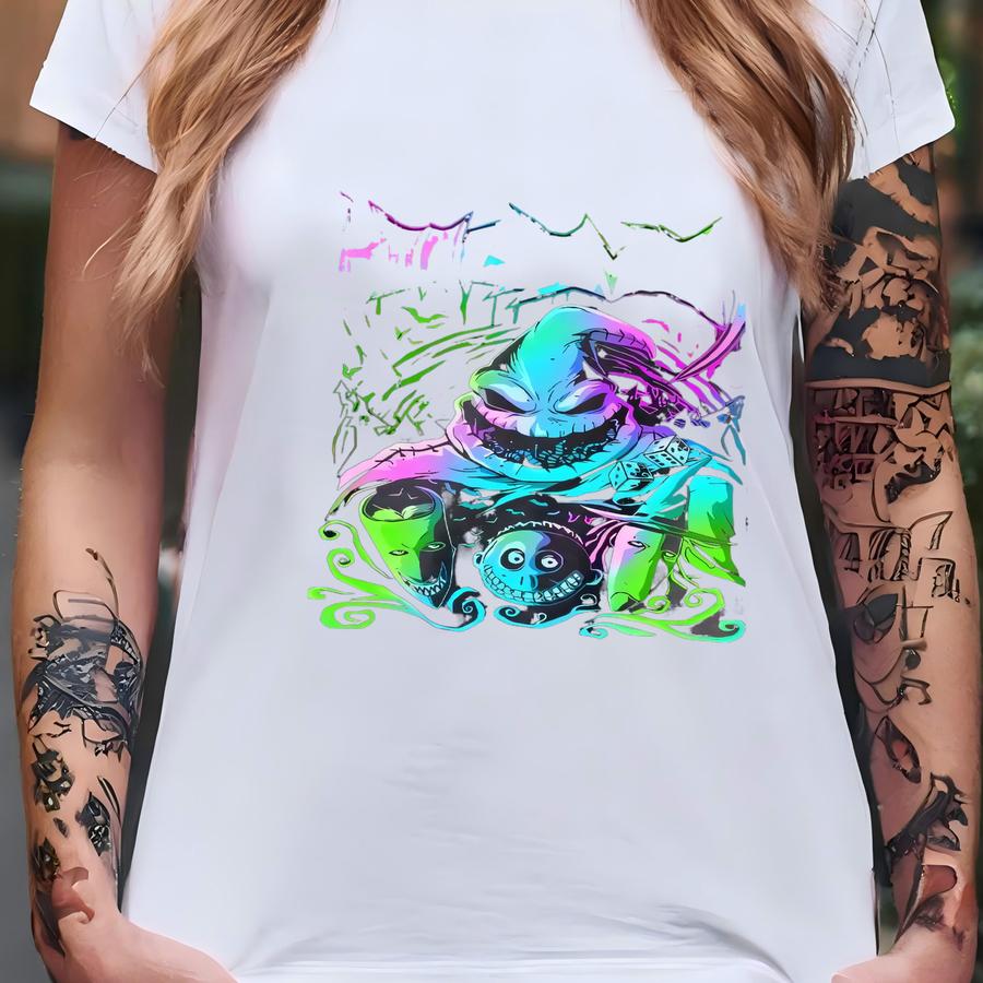 Two-sided Let's Oogie Boogie Sweatshirt, Halloween Oogie Boogie Sweatshir, Spooky Inspired Top, Neon Glow Nightmare Sweater T-shirt