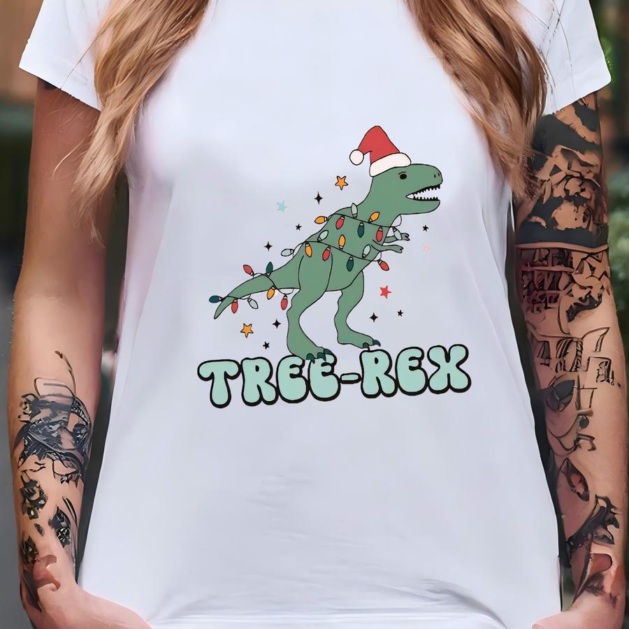 Christmas Dinosaur Light Sweatshirt, T-rex Christmas Hoodie, Animal Christmas Light Outfit, Dinosaur Santa Hat Sweater, Funny Christmas Tee T-shirt