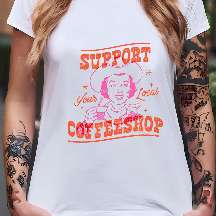 Western Cowgirl Coffee Hoodie: Support Local Coffeeshop Tee T-shirt