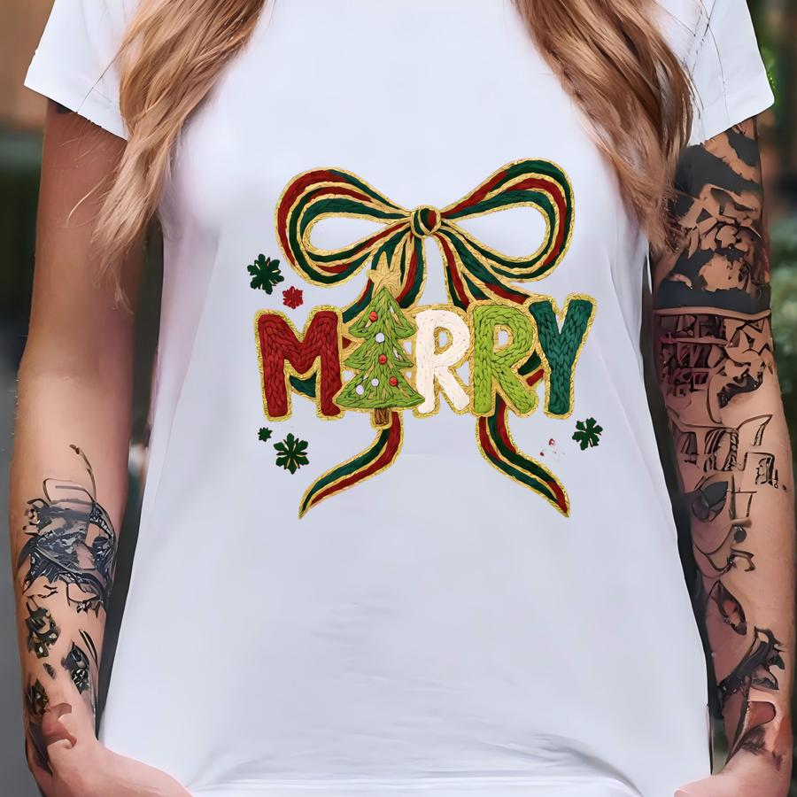 Coquette Merry Christmas Sweatshirt, Faux Yarn Bow Y Style Christmas Shirt, Cute Holiday Crewneck, Festive Coquette Christmas Gift T-shirt