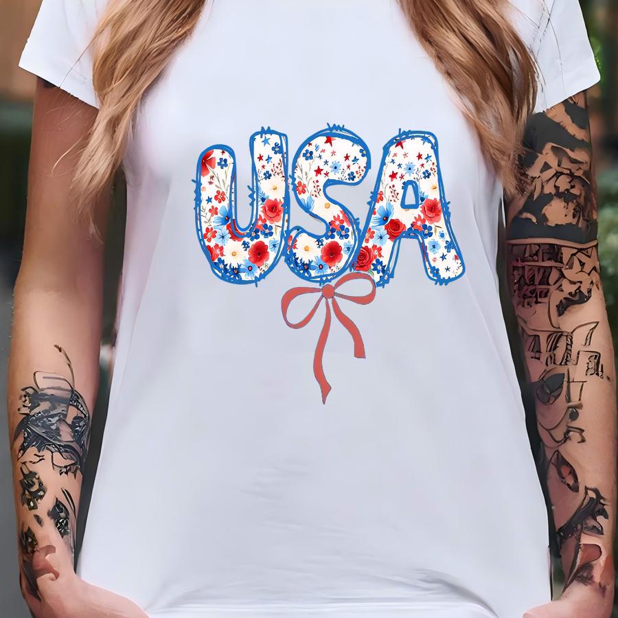 ® Coquette Usa Shirt, 4th Of July Shirt Women, Stars Stripes Usa Flag Shirts, Floral Patriotic Shirt, Labor Day Shirt T-shirt