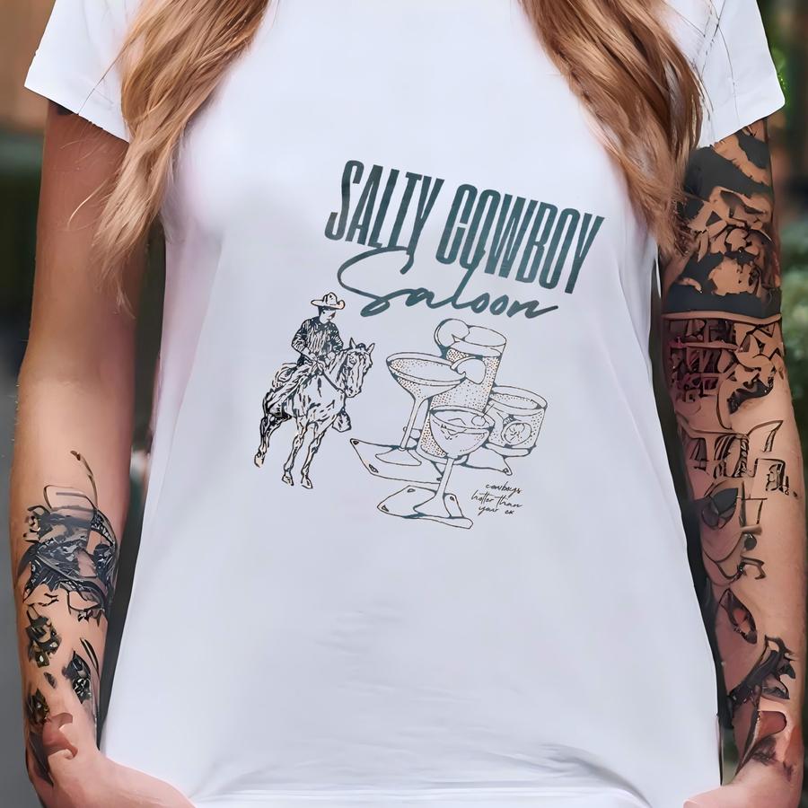 Western Cowboy Aesthetic Retro Graphic Sweatshirt, Salty Cowboy Saloon Graphic Hoodie, Western Aesthetic Cowboy Gift T-shirt