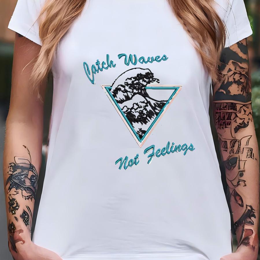 Catch Waves, Not Feelings Custom Crewneck Sweatshirt, Beach Crewneck Sweatshirt, Waves T-shirt