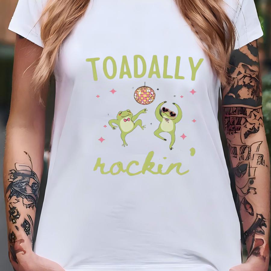 Cute Frog Sweatshirt Funny Amphibian Pun Shirt Retro Band Style Frog Gift Animal Lover Shirt For Her Him Toadally Rockin Crewneck Sweatshirt T-shirt