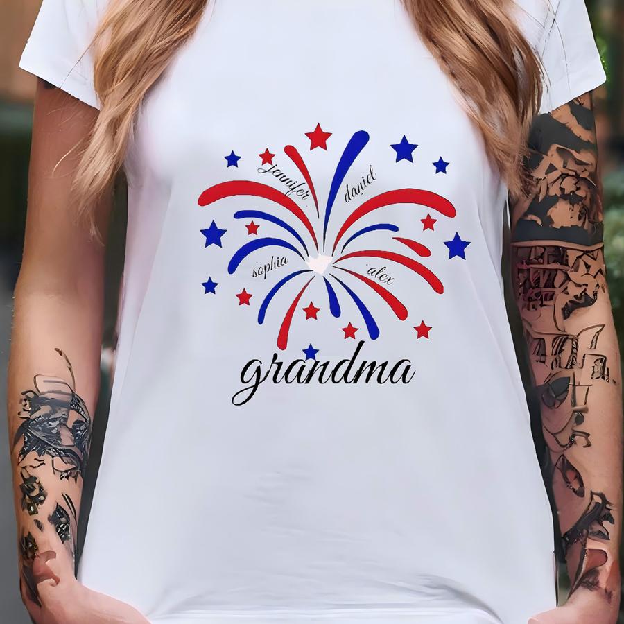 Custom Grandma Shirt With Kids Names Shirt,personalized Grandma, Patriotic Nana 4th Of July Grandma And Grandkid Name Shirt,4th Of July Mimi T-shirt