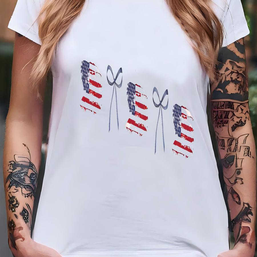 ® American Flag And Dainty Bow Shirt,america Shirt,4th Of July Tee,coquette Patriotic Tee,coquette Usa Shirt 4th Of July Shirt T-shirt