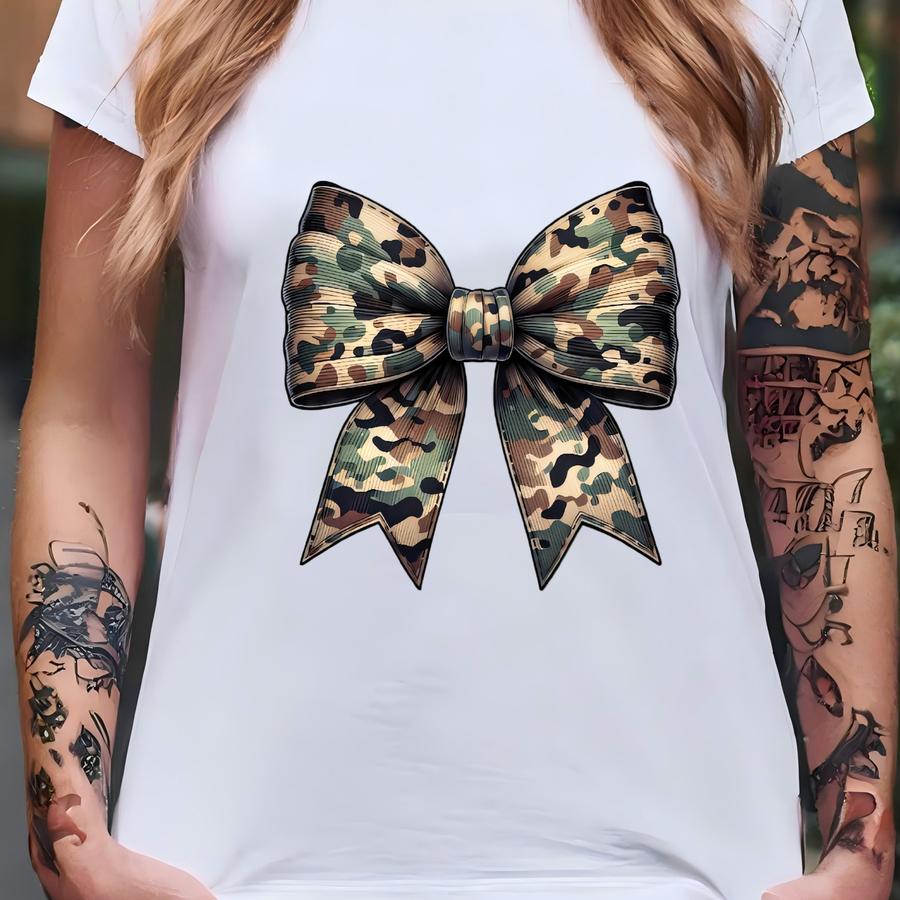 Camo Bow Sweatshirt, Camo Coquette Bow Shirt, Fall Shirt, Women's Camouflage Bow Shirt,camo Shirt, Duck Hunting Shirt, Old School Camo Shirt T-shirt