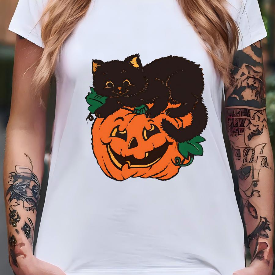 Black Cat Pumpkin Dtf Transfer, Halloween Ghost Cat Dtf, Halloween Cat Mama Dtf, Pumpkins Heat To Press,halloween Black Cat Ready To Press T-shirt