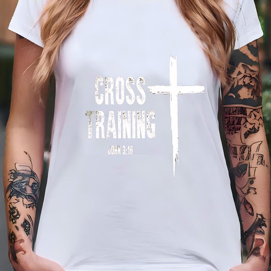 Cross Training Christian Shirt, Faith Workout Gym Tee, John 3:16 Bible Verse Shirt, Religious Fitness Top, Jesus And Gym Motivation Tee T-shirt