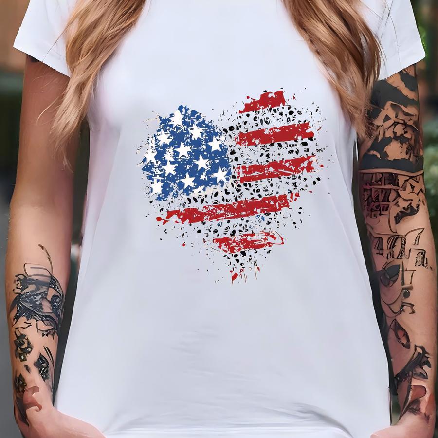 American Flag Heart Tee, 4th Of July Tee, American Girl Tee, Patriotic Gifts, Independence Day Totes, Women Shoulder T-shirt