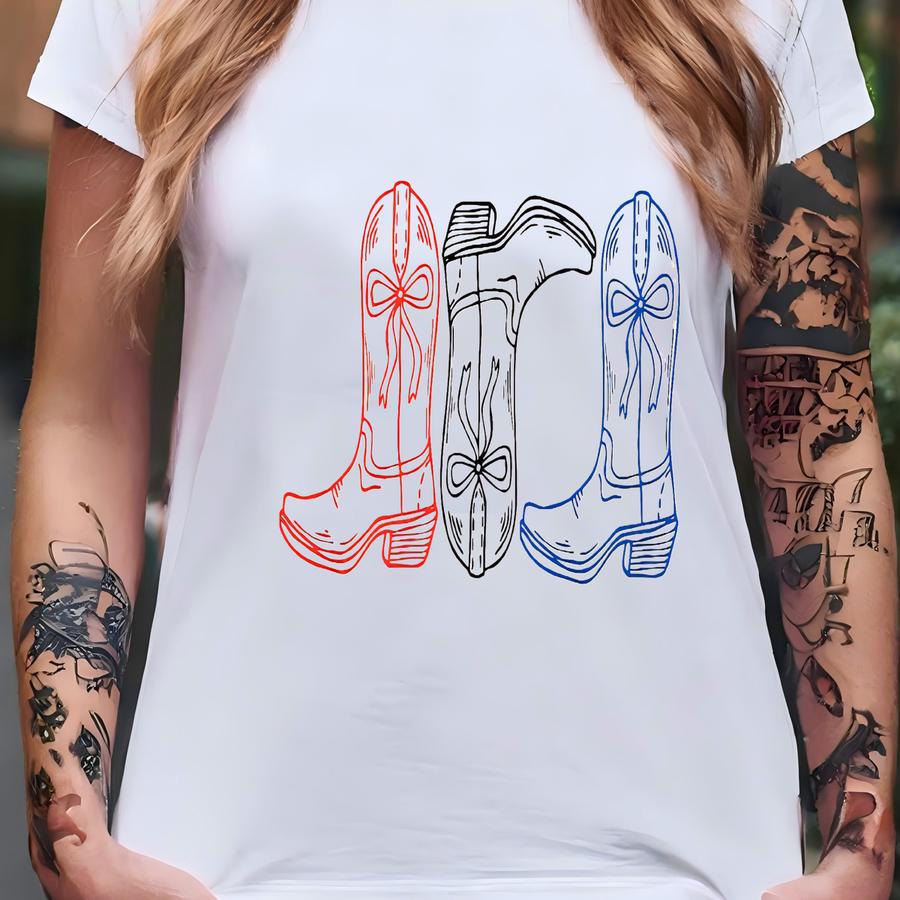 Red White And Blue Cowgirl Cowboy Boots, Western 4th Of July Shirt, Country 4th Of July Shirt, Patriotic Shirt, American Tee, Independence T-shirt