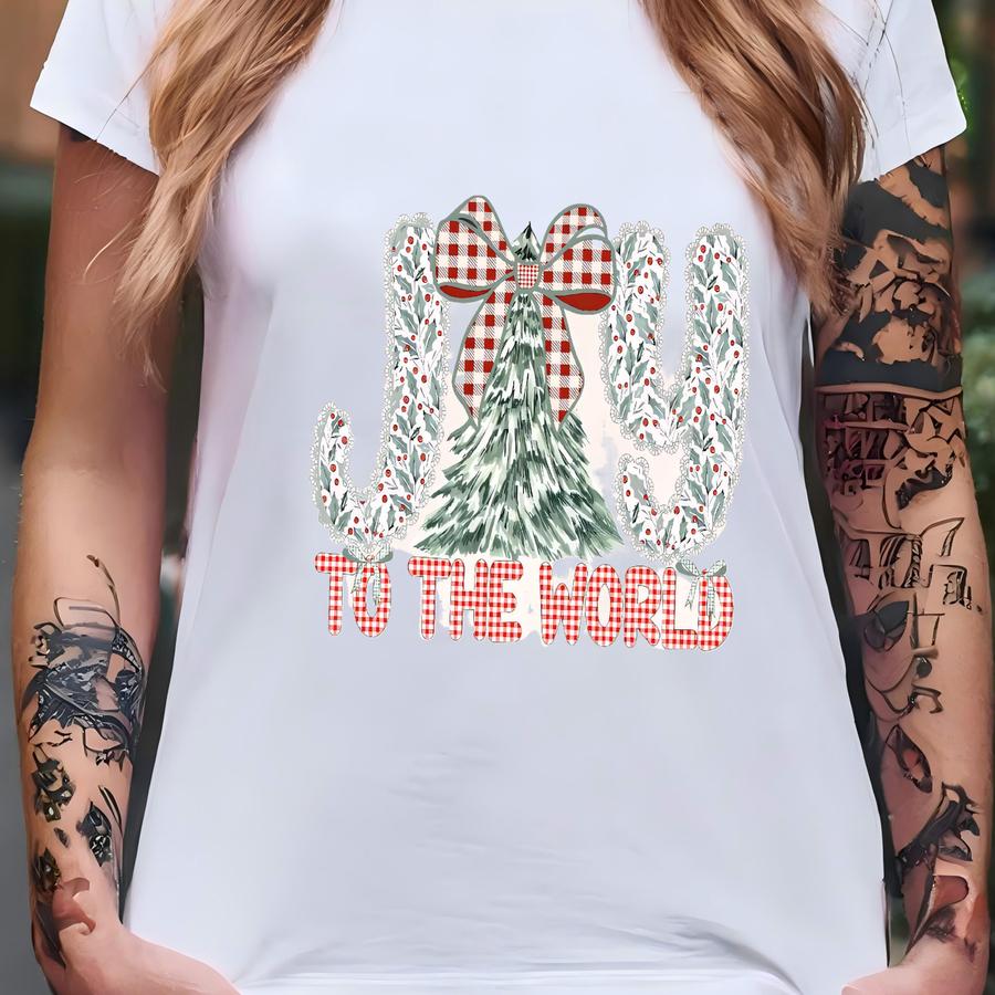 Christian Christmas Shirt, Joy To The World Tshirt, Holiday Crewneck Women Xmas Shirt, Cute Jesus Christmas Tree, Christmas Coquette Bow Tee T-shirt