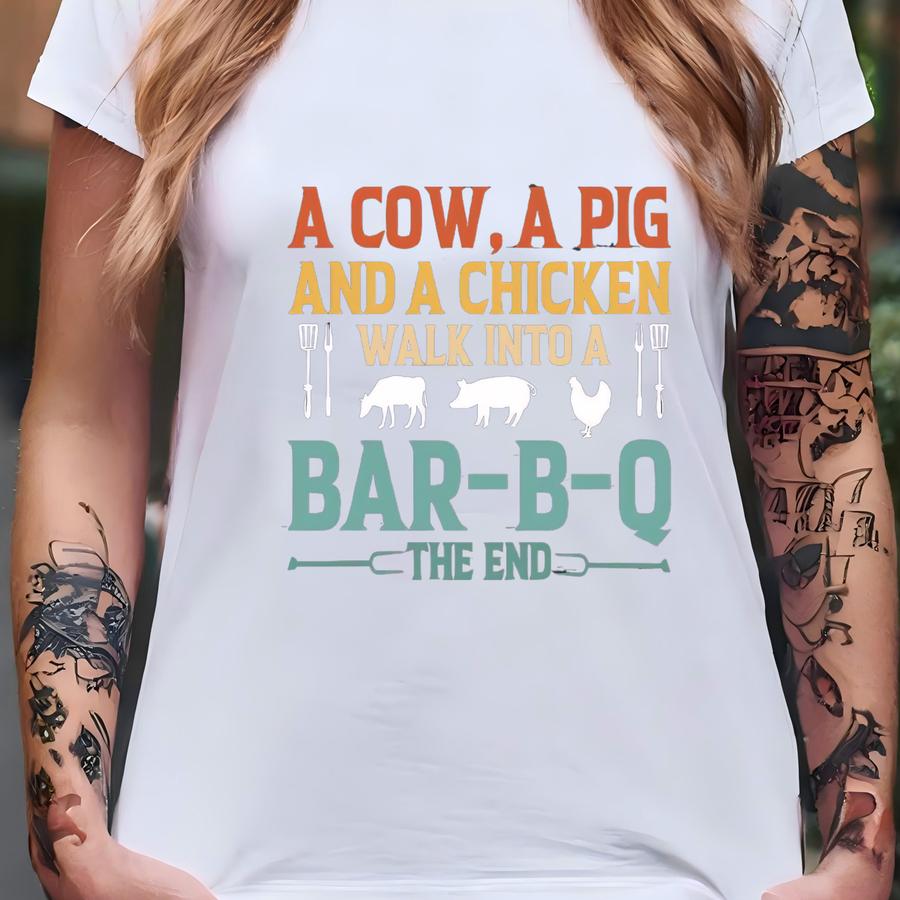 A Cow A Pig And A Chicken Walk Into A Bbq The End Shirt, Funny Grilling Shirt, Bbq Lover Gift,funny Barbeque Shirt,gift For Dad,grill Master T-shirt