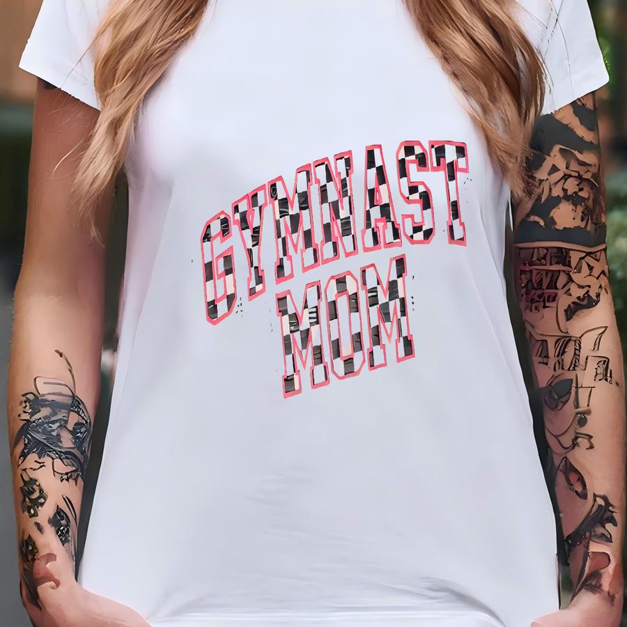 Customizable Gymnast Mom Raglan Shirt: Rhinestone Checkered Design T-shirt