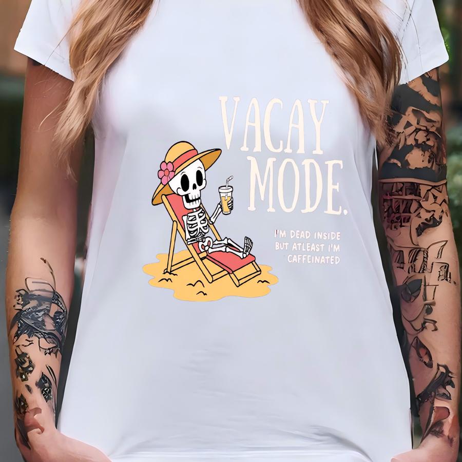 Vacay Mode Shirt, Summer Skeleton Tee, Coffee Shirt,funny Skeleton Hoodie,coffee Lovers Gift,girly Summer,beach Vibes T-shirt