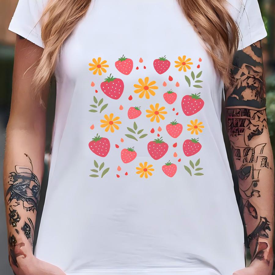 Boho Strawberry Shirt, Boho Floral Shirt, Farmers Market Shirt, Floral , Strawberry Lovers,fruit Lover Gift Tee T-shirt