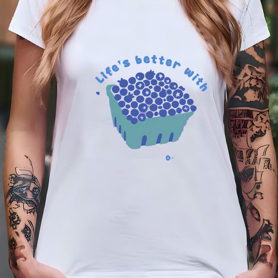 ® Life's Better With A Handful Of Blueberries Shirt, Summer Fruit Tee, Cute Blueberry Graphic Hoodie T-shirt