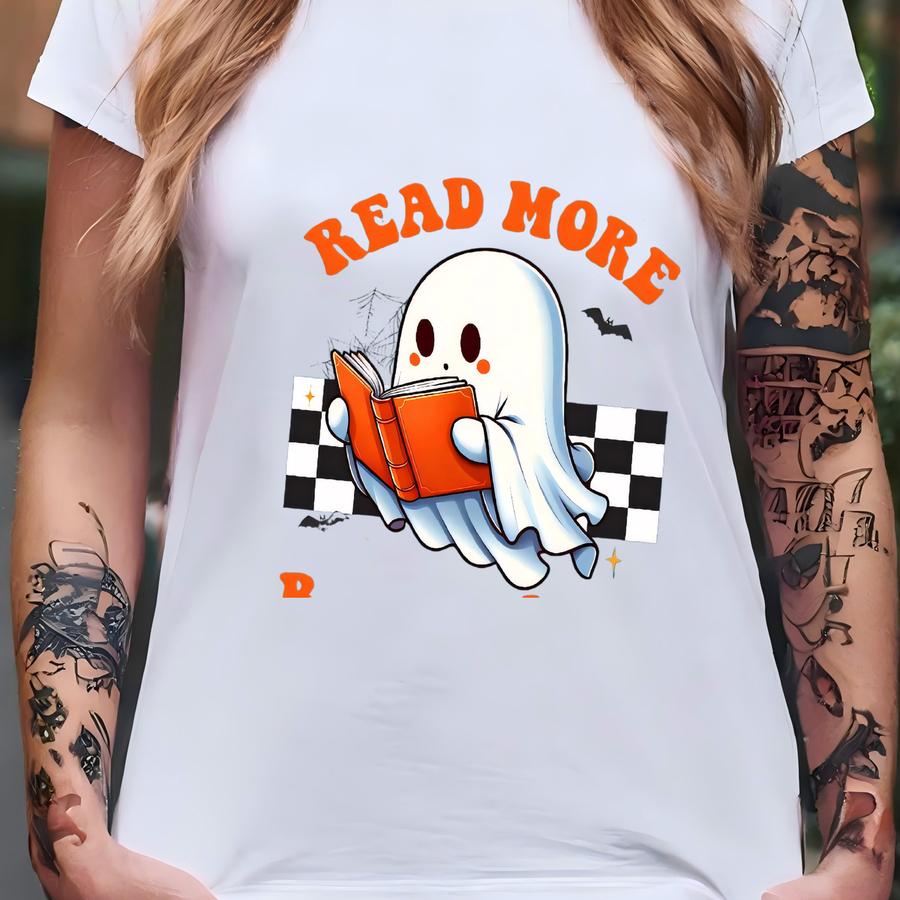 ® Ghosts Reading Books Shirt, Books Lover Ghost Gift, Cute Little Ghost Shirt, Womens Halloween Shirt, Spooky Season Shirt T-shirt