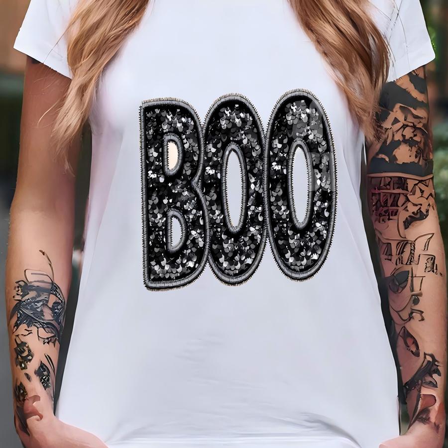 Boo Faux Sequin Bling Glitter Sweatshirt, Glitter Sweater, Halloween Family Crewneck, Mommy Me Halloween, Cute Holiday Sweater Y2k T-shirt