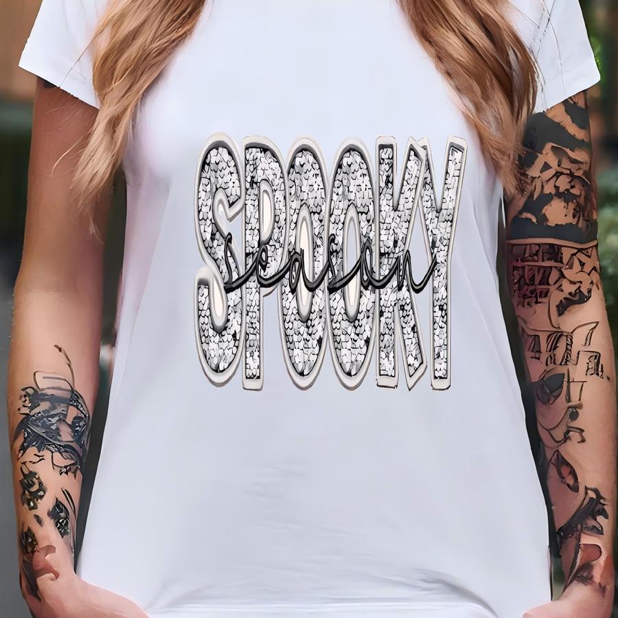 Spooky Season Sequin Glitter Sweatshirt, Glitter Sweater Halloween Family Crewneck, Halloween Sweatshirt, Cute Sparkly Halloween Sweater Y2k T-shirt