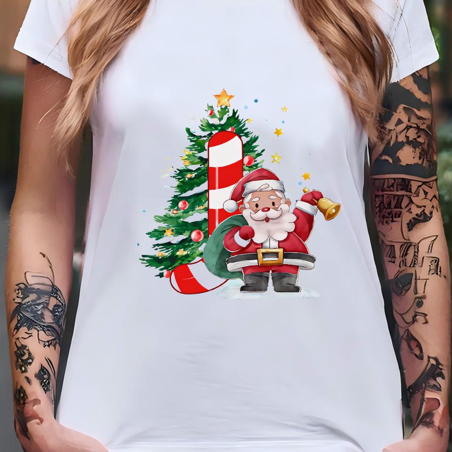 Custom Initial Ornament 2025, Santa Monogram Christmas Ornament Gift For Family, Personalized Letter Name Ornament Gift, Keepsake Decoration T-shirt