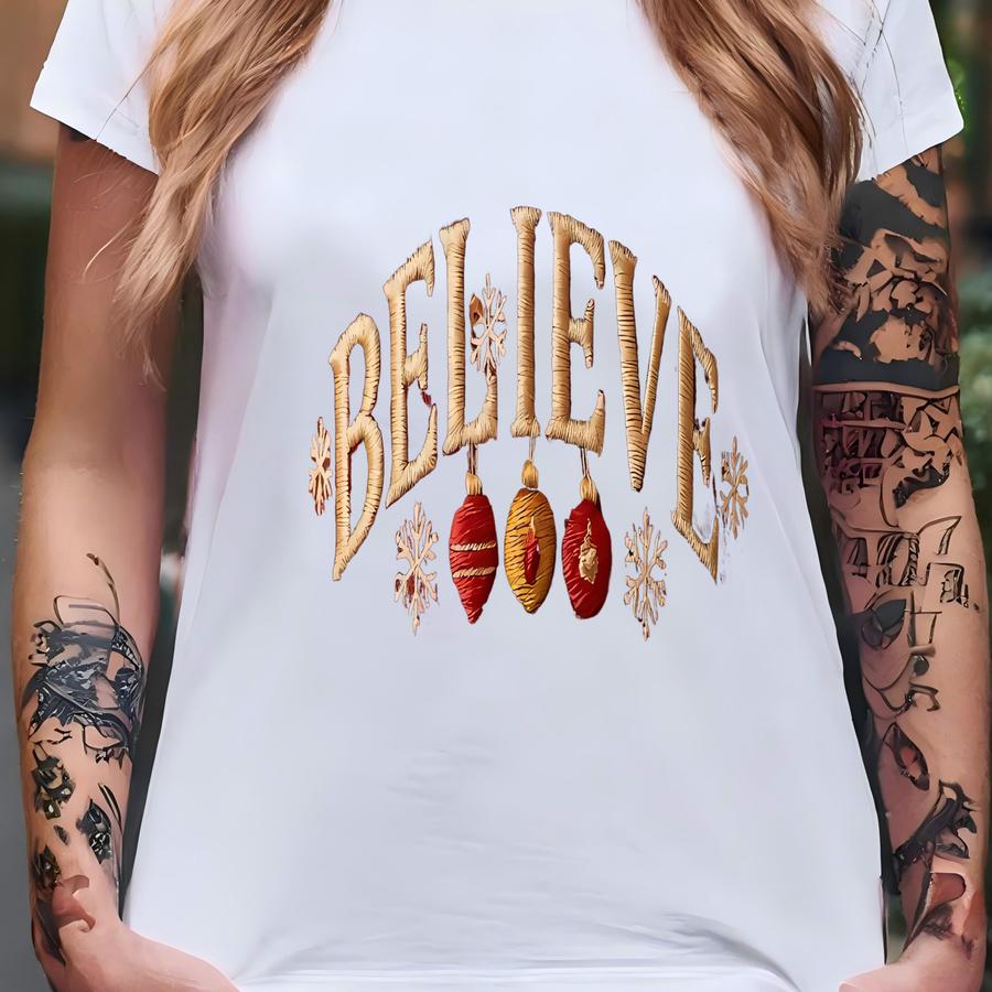 Christmas Believe Ornament Dad Hat, Holiday Bauble Wash Cap, Festive Xmas Gift, Vintage Christmas Hat T-shirt