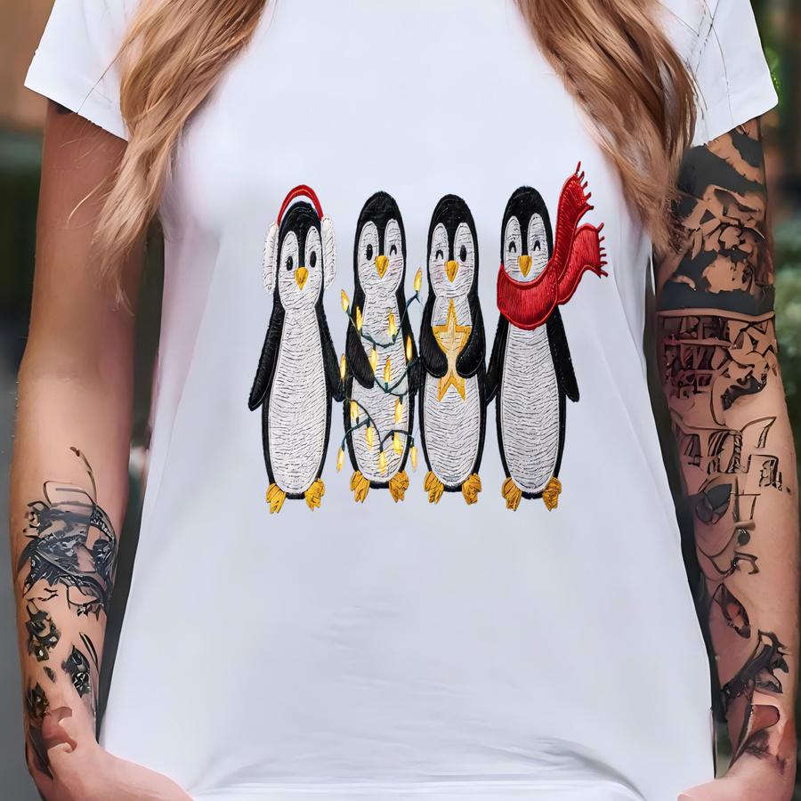 Christmas Penguin Sweatshirt, Cute Penguin Scarf Lights Crewneck, Winter Holiday Animal Gift, Blue Xmas Shirt T-shirt