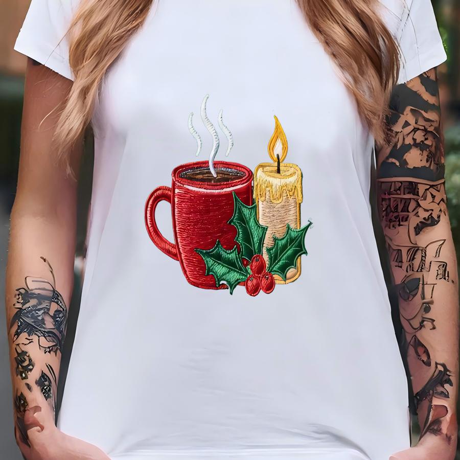 Christmas Coffee Candle Sweatshirt, Hot Cocoa Holly Hoodie, Winter Hygge Vibe Shirt, Festive Cozy Gift T-shirt