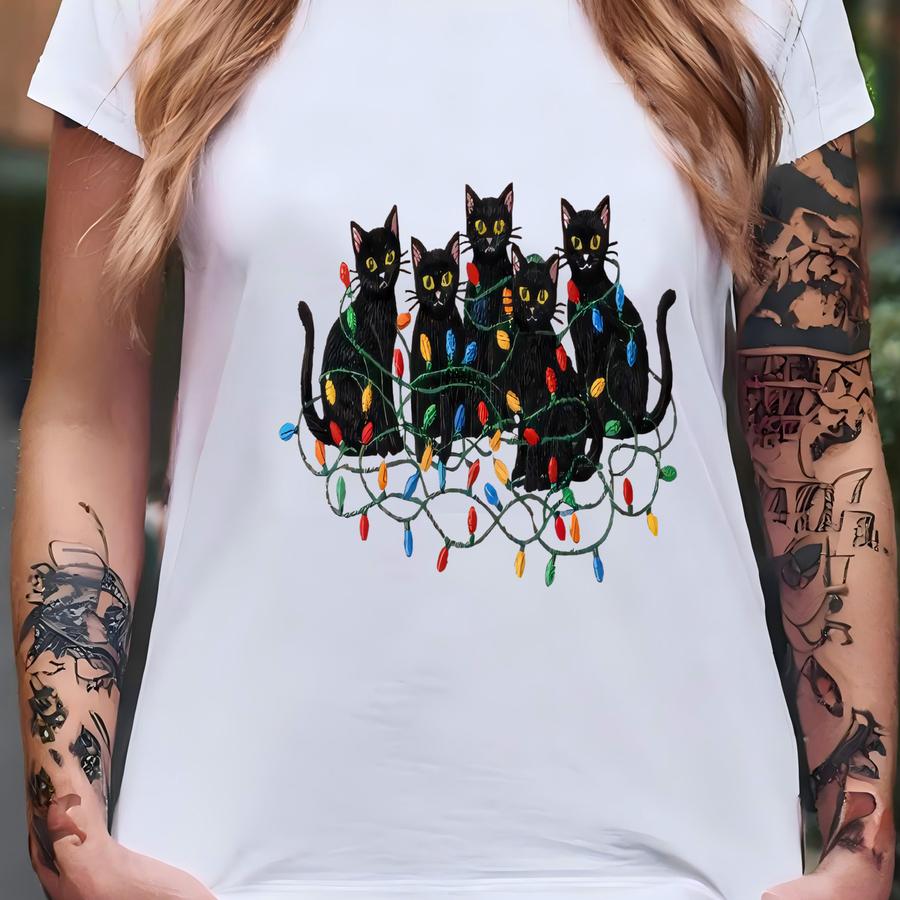 Black Cat Christmas Lights Sweatshirt, Funny Cat Lover Holiday Crewneck, Ugly Christmas Sweater Alternative T-shirt
