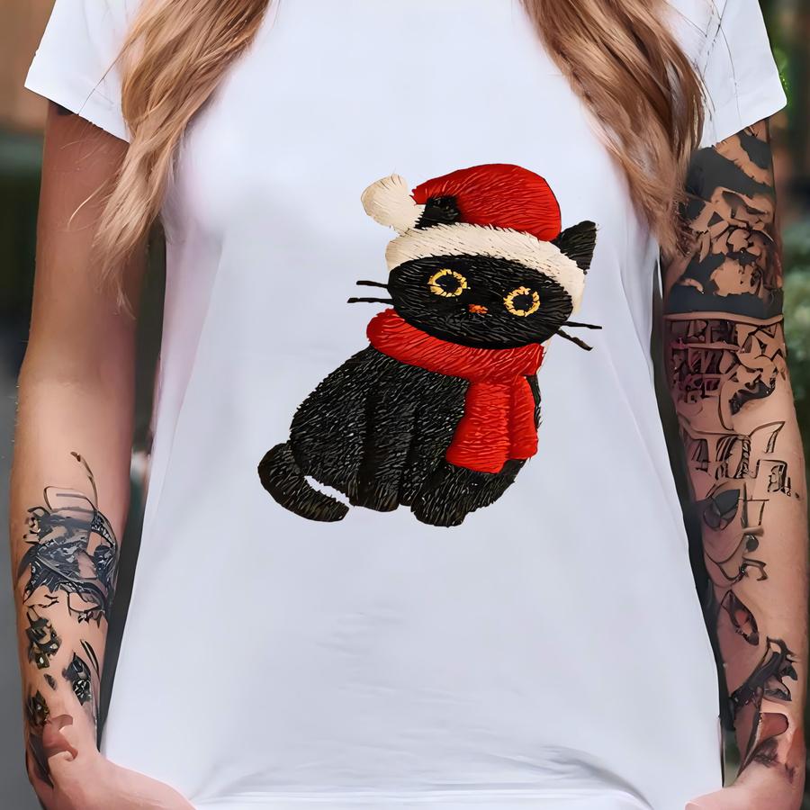 Christmas Black Cat Sweatshirt, Holiday Pet Hoodie, Minimalist Cat Crewneck, Xmas Kitty Hoodie, Cat Mom Gift, Small Design T-shirt