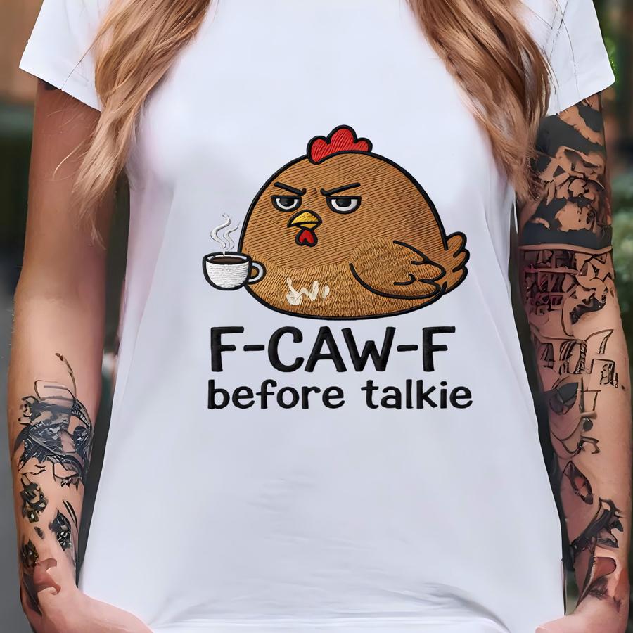 Chicken Sweatshirt, Funny Coffee Lover Gift, F-caw-f Before Talkie Crewneck, Sarcastic Morning Sweater, Chicken Mom Apparel T-shirt