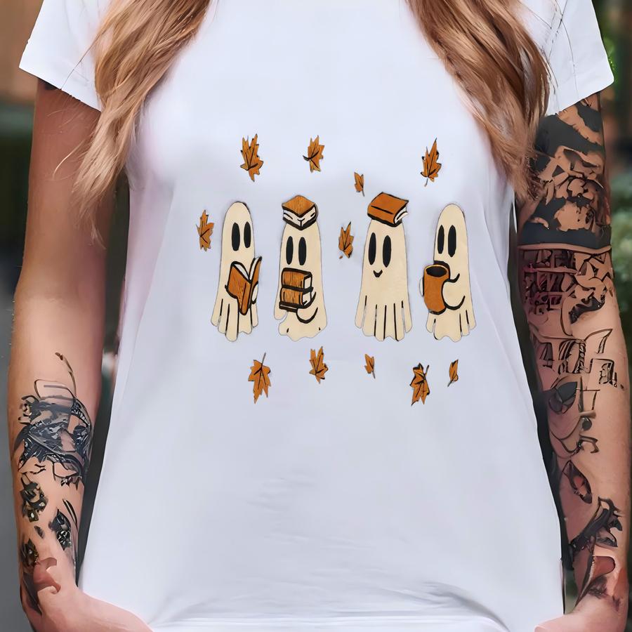 Reading Ghost Sweatshirt, Cute Ghosts Reading Books Autumn Shirt, Autumn Sweater, Halloween Gift For Bookish T-shirt