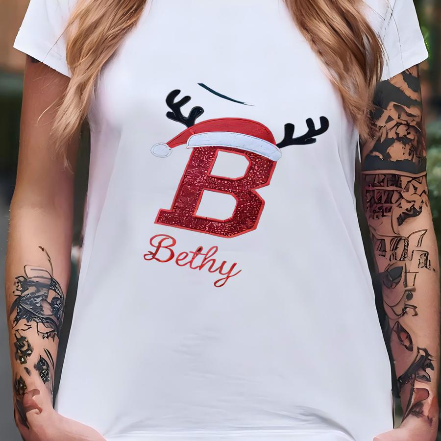 Christmas Letter Sweatshirt, Custom Initial Name Shirt, Kids Holiday Crewneck, Family Matching Reindeer Gift, Christmas Gift T-shirt