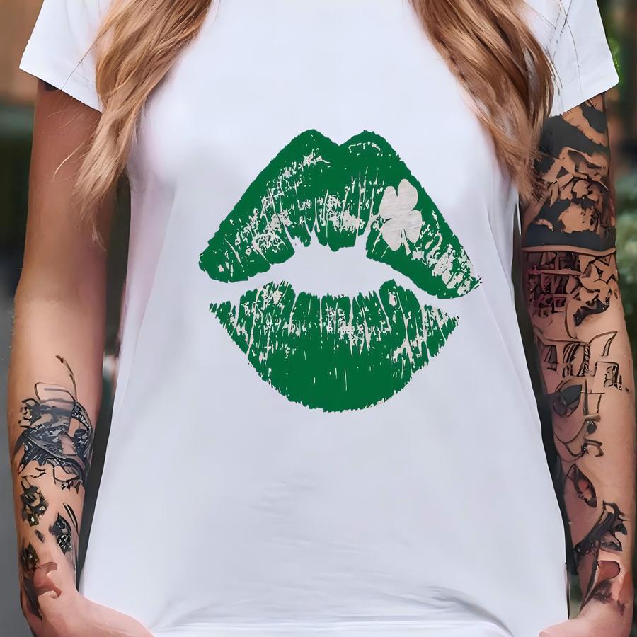 St Patricks Day Shirt Women, Green Shamrock Lips Shirt, St. Patrick's Tees, Lucky Shirts, Shamrock Tshirt, Kiss Me Im Irish Shirts For Women T-shirt