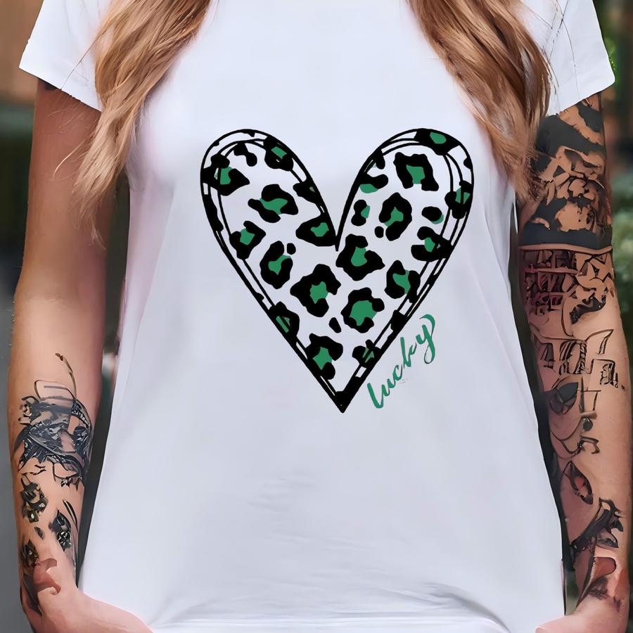 St Patricks Day Shirt For Girls, Kids St Patricks Day Tees, Green Leopard Heart Lucky Shirt, Girls St Patricks Day Tshirt, St Patricks Tees T-shirt