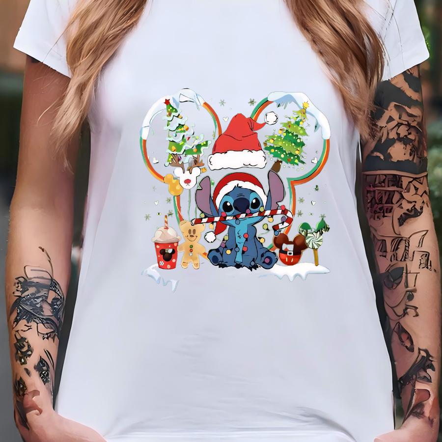 Couple Santa Stitch And Lilo Christmas Sweatshirt, Stitch Couple Sweater, Head Hoodie, Land Family Sweatshirt T-shirt