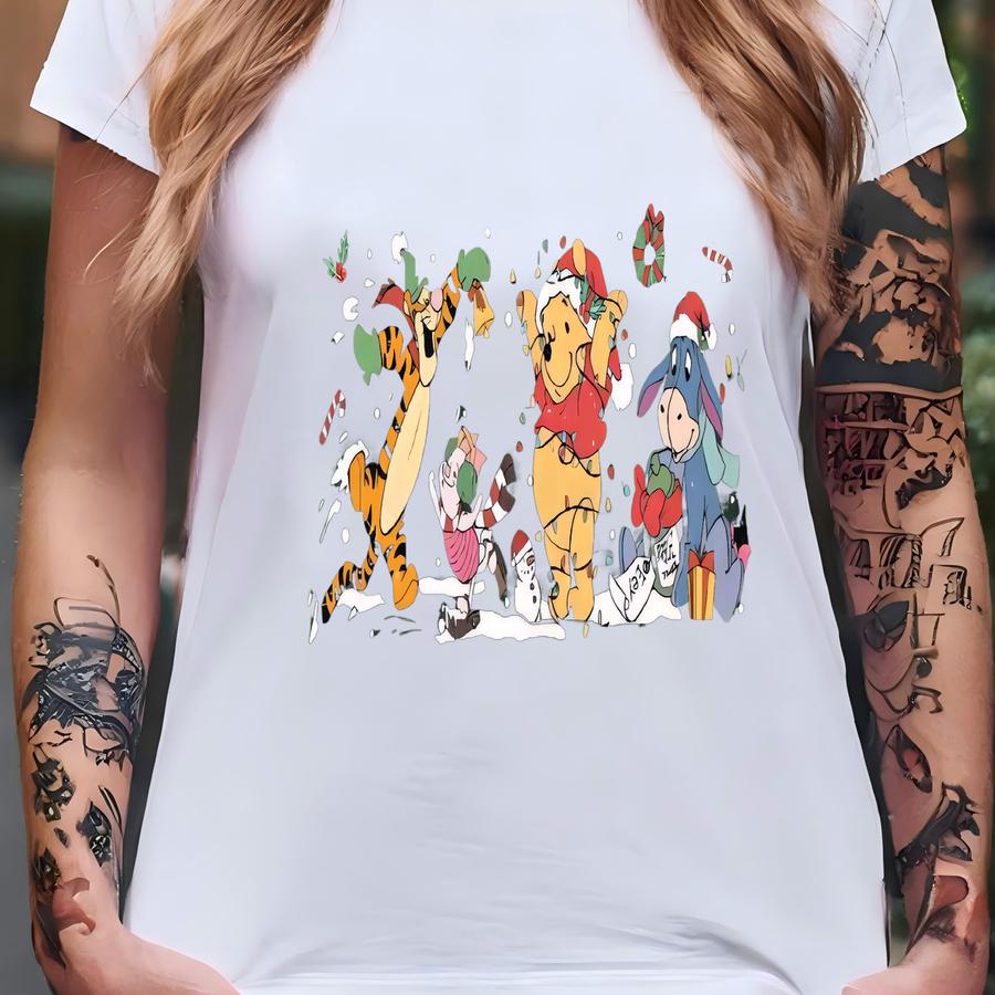 Christmas Sweatshirt, Pooh Piglet Eeyore Tigger Xmas Sweater, Pooh Bear Christmas Party, Christmas Holiday Trip Hoodie T-shirt