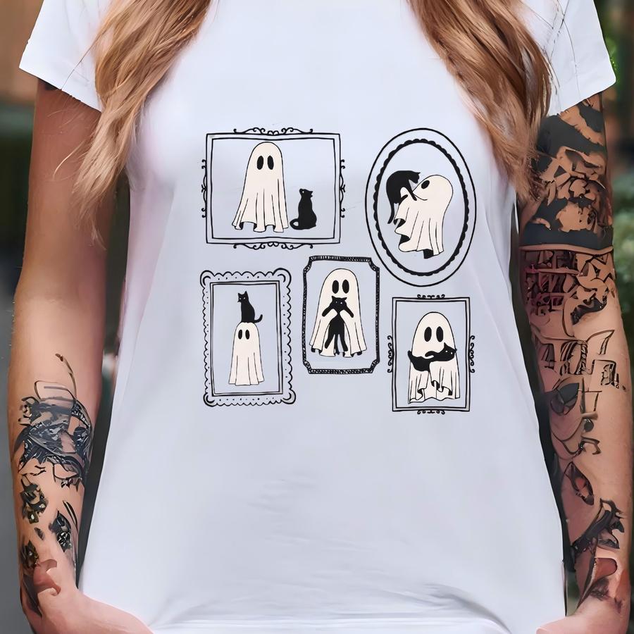 Toddler Halloween Shirt Ghost And Black Cat Tee Spooky Season T Shirt For Kids Cute Trick Or Treat Fall Outfit Vintage Frame Toddler Gift T-shirt