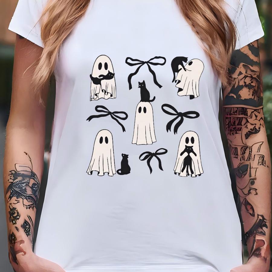 Toddler Halloween Shirt Ghost And Black Cat Tee With Bows Cute Fall T Shirt For Kids Spooky Season Trick Or Treat Toddler Gift Idea T-shirt