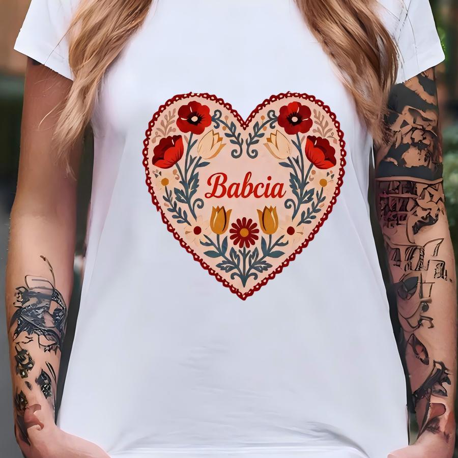 Babcia Sweatshirt, Polish Folk Art Floral Heart, Grandma Gift T-shirt