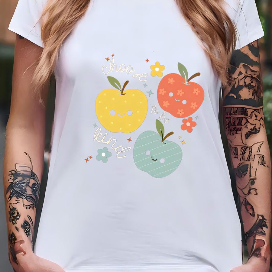 Choose To Be Kind Sweatshirt, Fall Teacher Apple Shirt, Elementary Teacher Shirt, Cute Kindergarten First Grade Teacher Hoodie Women T-shirt