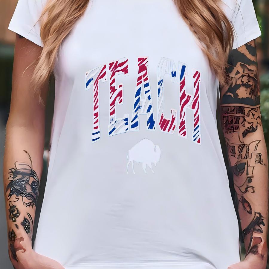 Retro Buffalo Teach Sweatshirt, Buffalo Football Fan Game Day Shirt, Striped Varsity Letters Tee, Cute Teacher Shirt Women, Men's Shirts Guy T-shirt